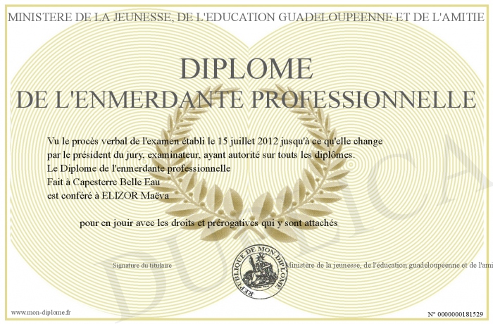 Envoyez par email votre Diplôme de l'enmerdante professionnelle personalisé