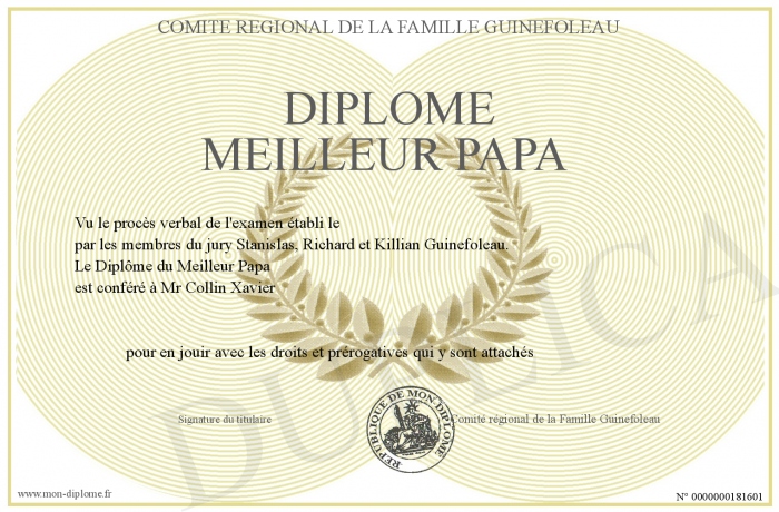 Envoyez par email votre Diplôme Meilleur Papa personalisé