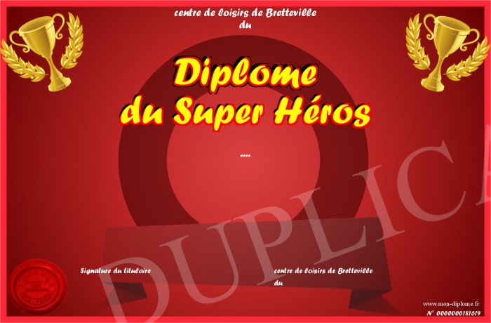 Envoyez par email votre Diplôme du Super Héros personalisé