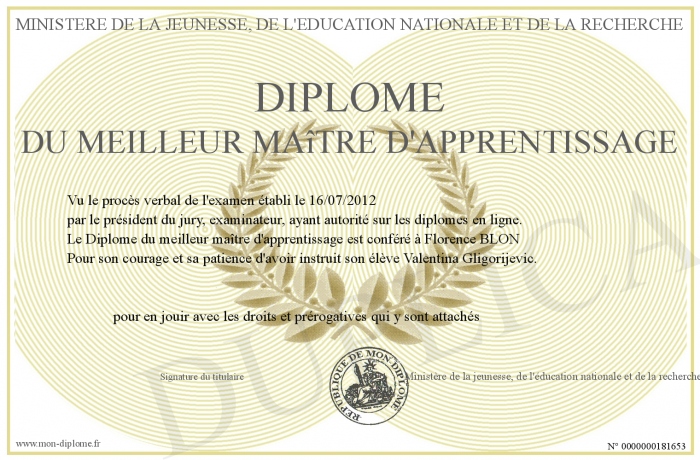 Envoyez par email votre Diplôme du meilleur maître d'apprentissage personalisé