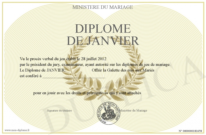 Envoyez par email votre Diplôme de JANVIER personalisé