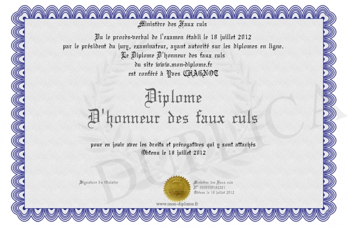 Envoyez par email votre Diplôme D'honneur des faux culs personalisé