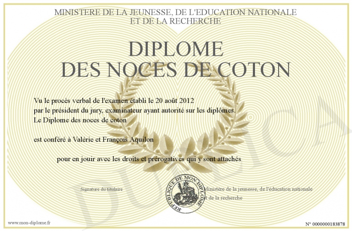 Envoyez par email votre Diplôme des noces de coton personalisé