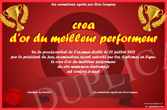 Envoyez par email votre crea d'or du meilleur performeur personalisé
