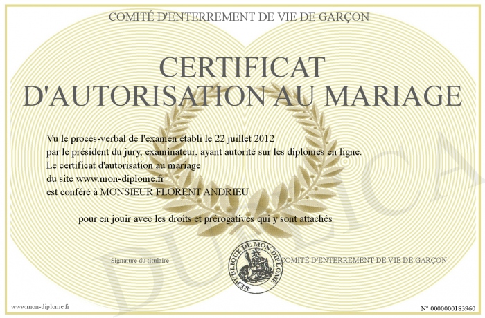 Envoyez par email votre certificat d'autorisation au mariage personalisé