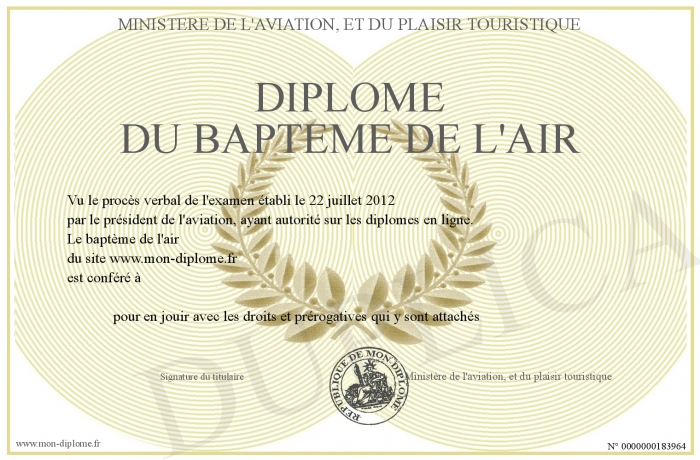 Envoyez par email votre Diplôme du bapteme de l'air personalisé