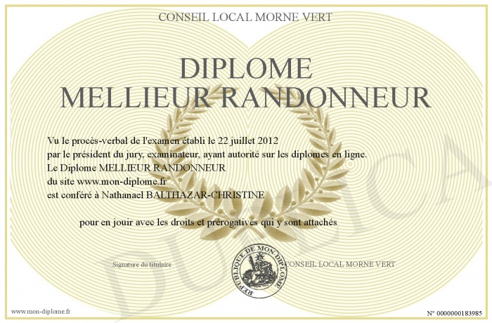Envoyez par email votre Diplôme MELLIEUR RANDONNEUR personalisé