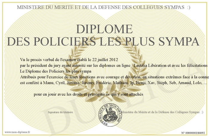 Envoyez par email votre Diplôme des Policiers les plus sympa personalisé