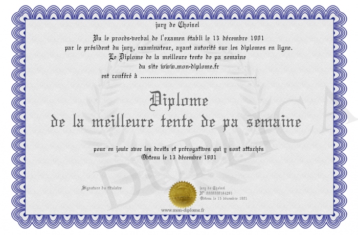 Envoyez par email votre Diplôme de la meilleure tente de pa semaine personalisé