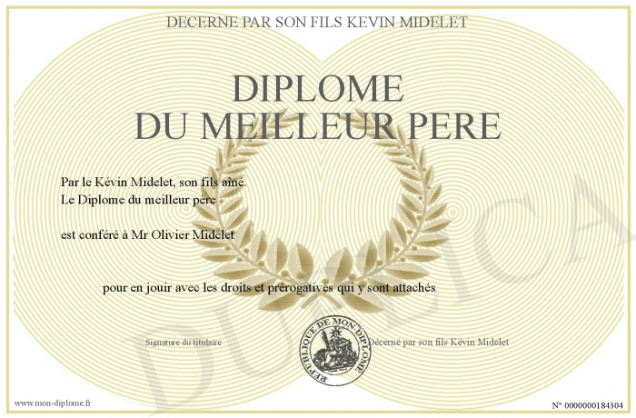 Envoyez par email votre Diplôme du meilleur père personalisé