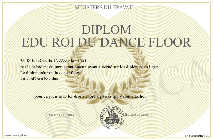 Envoyez par email votre diplom edu roi du dance floor personalisé