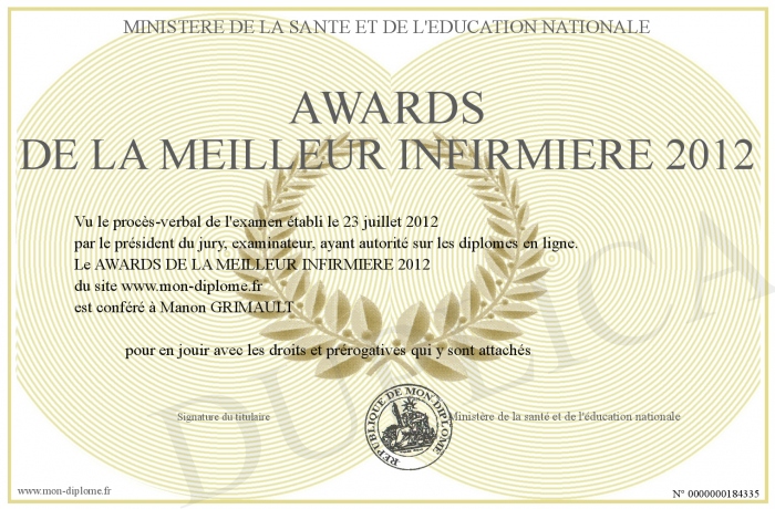Envoyez par email votre AWARDS DE LA MEILLEUR INFIRMIERE 2012 personalisé
