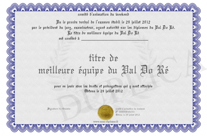 Envoyez par email votre titre de meilleure équipe du Val Do Ré personalisé