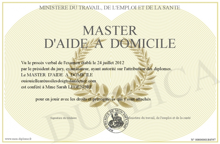 Envoyez par email votre MASTER D'AIDE A DOMICILE personalisé