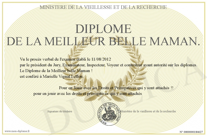 Envoyez par email votre Diplôme de la Meilleur belle Maman. personalisé