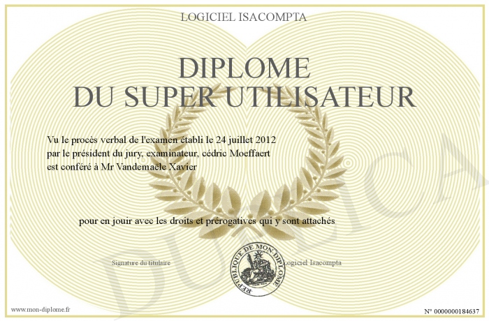 Envoyez par email votre Diplôme du Super Utilisateur personalisé