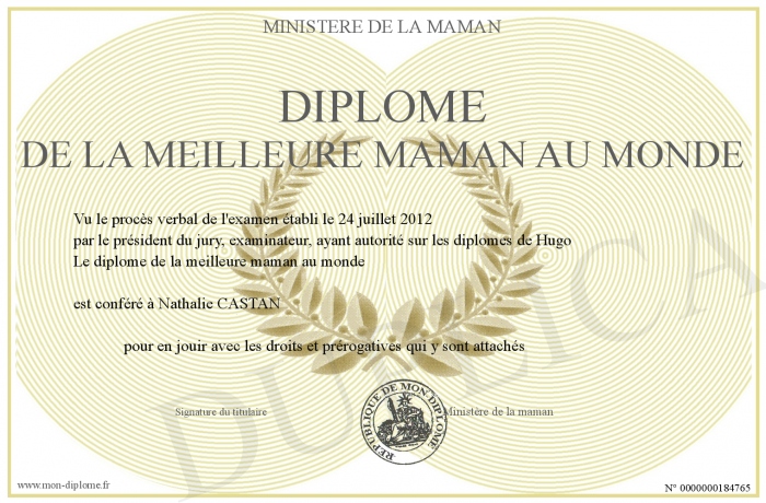 Envoyez par email votre Diplôme de la meilleure maman au monde personalisé