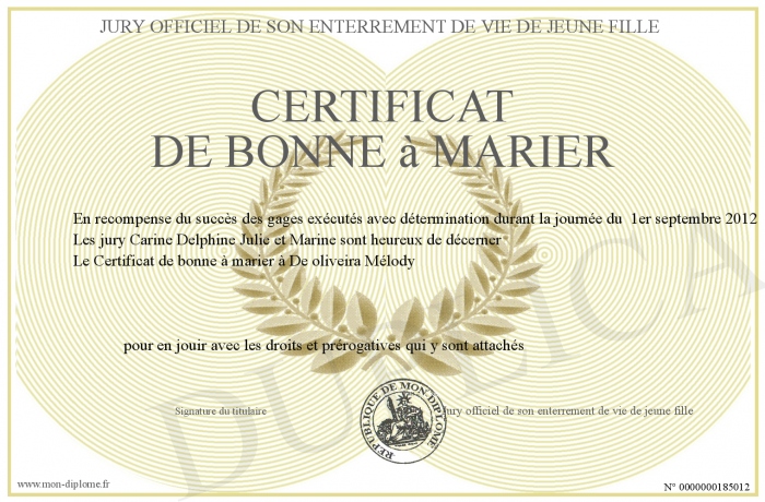 • Certificat de bonne à marier