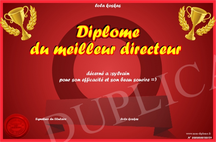Envoyez par email votre Diplôme du meilleur directeur personalisé