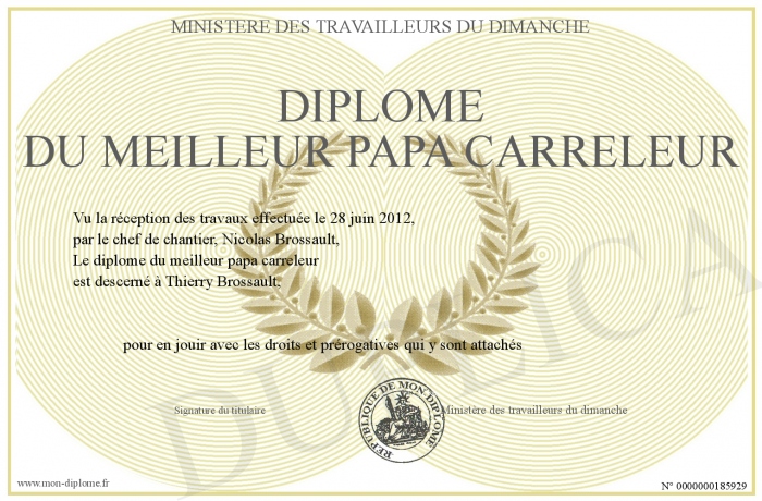 Envoyez par email votre Diplôme du meilleur papa carreleur personalisé