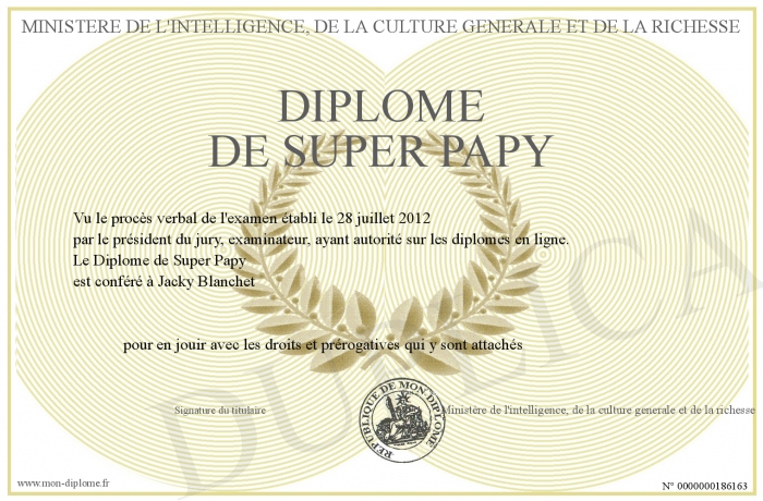Envoyez par email votre Diplôme de Super Papy personalisé