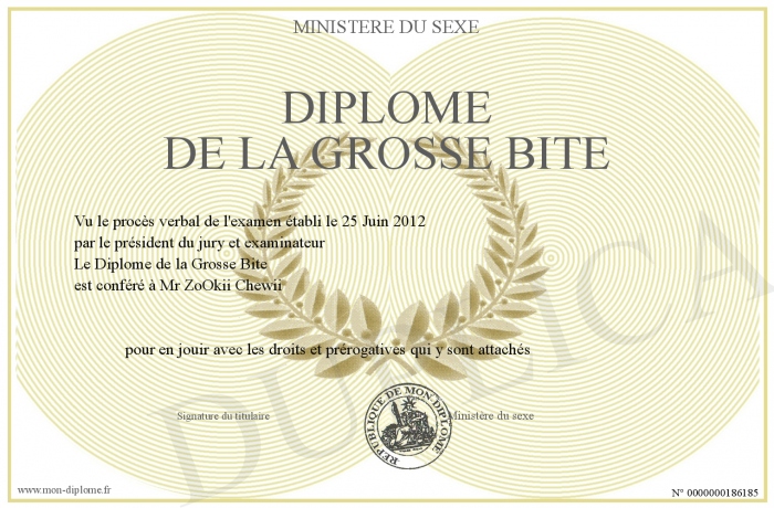 Envoyez par email votre Diplôme de la Grosse Bite personalisé