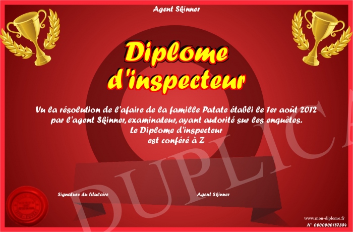 Envoyez par email votre Diplôme d'inspecteur personalisé