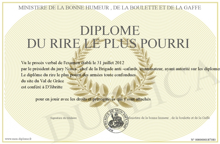 Envoyez par email votre Diplôme du Rire le plus pourri personalisé