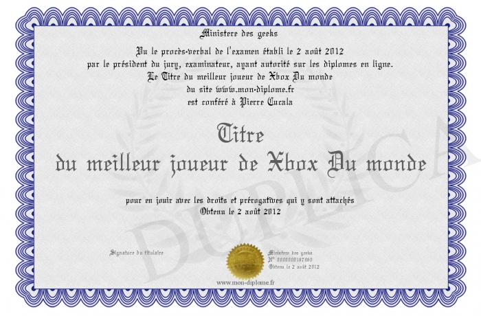 Envoyez par email votre Titre du meilleur joueur de Xbox Du monde personalisé