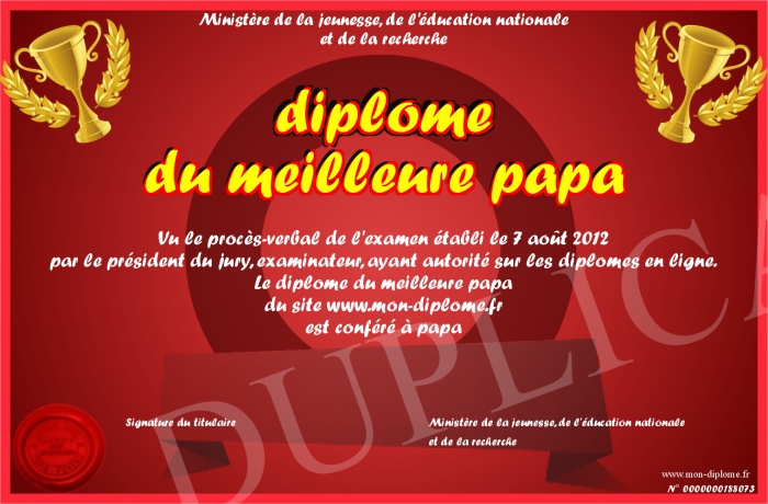 Envoyez par email votre diplôme du meilleure papa personalisé