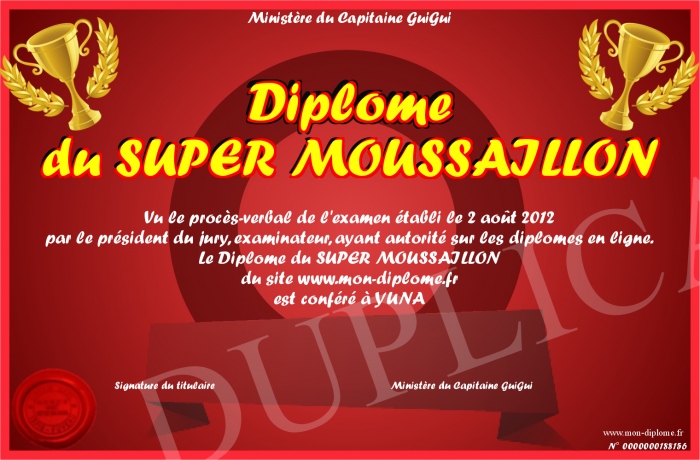 Envoyez par email votre Diplôme du SUPER MOUSSAILLON personalisé