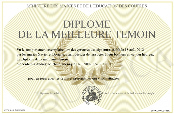 Envoyez par email votre Diplôme de la meilleure témoin personalisé