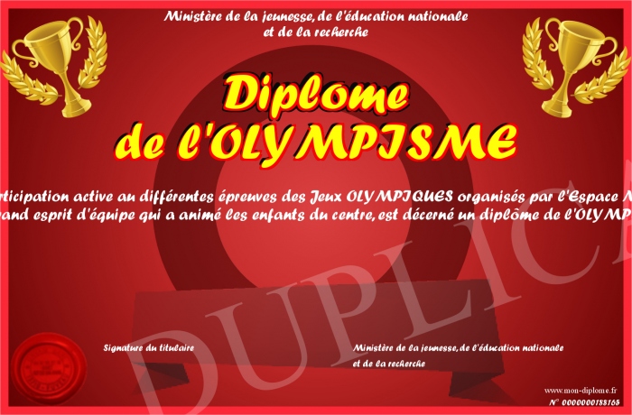 Envoyez par email votre Diplôme de l'OLYMPISME personalisé