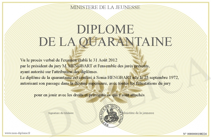 Envoyez par email votre Diplôme de la quarantaine personalisé