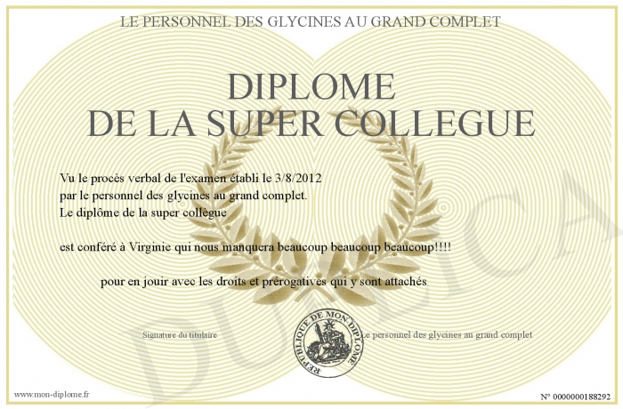 Envoyez par email votre Diplôme de la super collègue personalisé