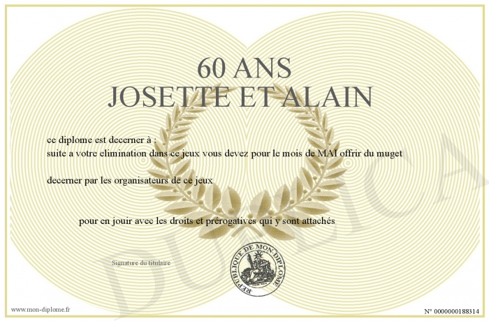 Envoyez par email votre 60 ans Josette et Alain personalisé