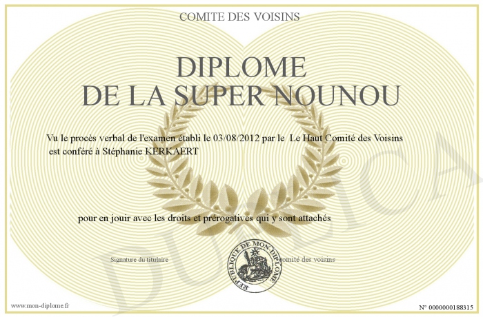 Envoyez par email votre Diplôme de la SUPER NOUNOU personalisé