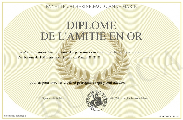 Envoyez par email votre Diplome de l'amitié en or personalisé