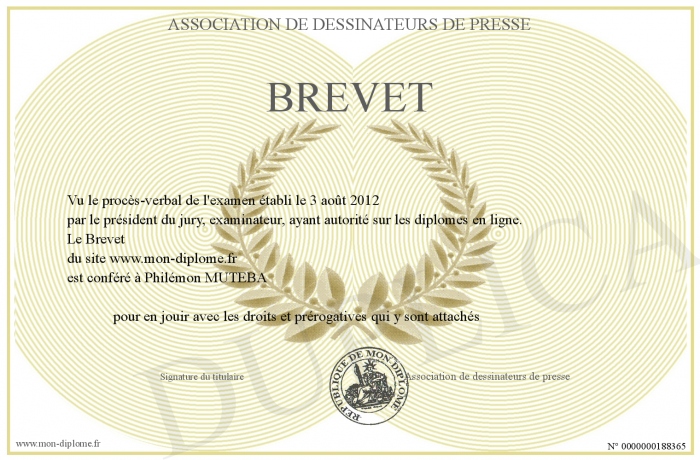 Envoyez par email votre Brevet personalisé