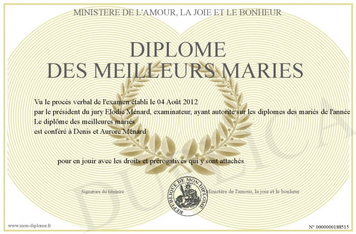 Envoyez par email votre Diplôme des meilleurs mariés personalisé