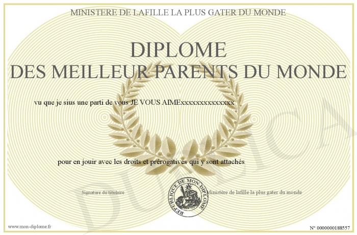 Envoyez par email votre Diplôme des meilleur parents du monde personalisé