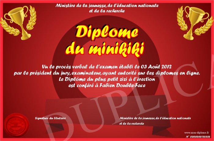 Envoyez par email votre Diplôme du minikiki personalisé