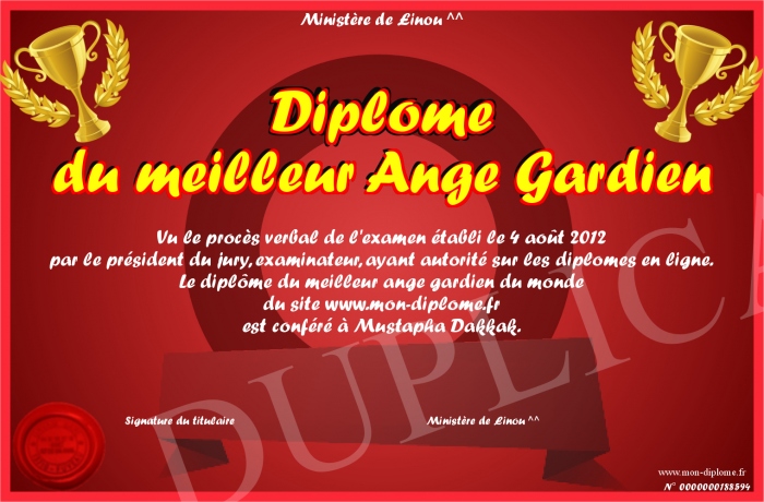 Envoyez par email votre Diplôme du meilleur Ange Gardien personalisé