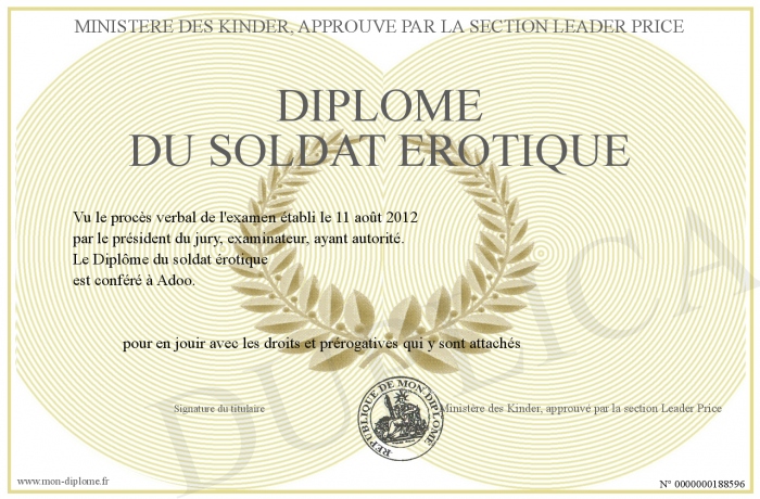 Envoyez par email votre Diplôme du soldat érotique personalisé