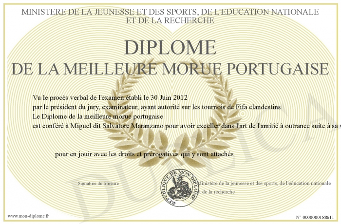 Envoyez par email votre Diplôme de la meilleure morue portugaise personalisé