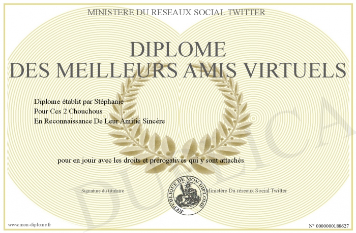 Envoyez par email votre Diplôme des Meilleurs Amis Virtuels personalisé