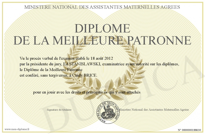 Envoyez par email votre Diplôme de la Meilleure Patronne personalisé
