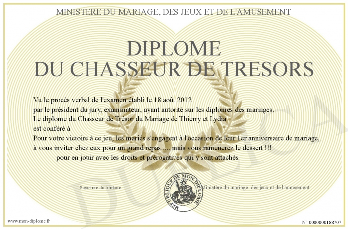 Envoyez par email votre Diplôme du chasseur de tresors personalisé