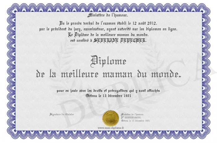 Envoyez par email votre Diplôme de la meilleure maman du monde. personalisé