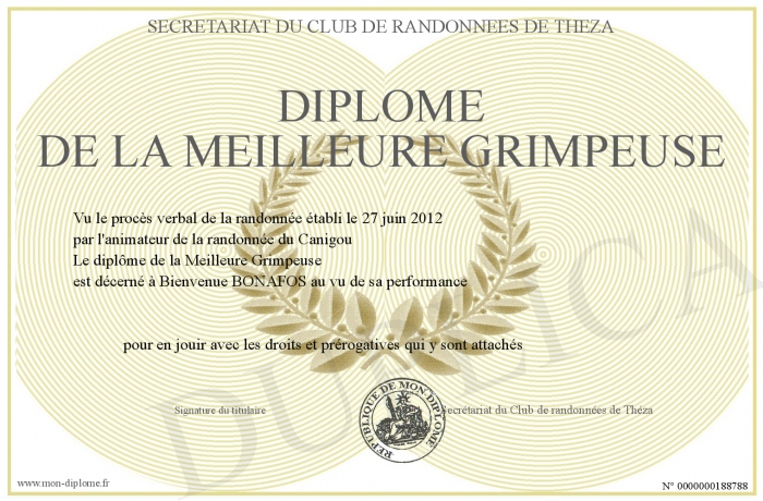 Envoyez par email votre Diplôme de la Meilleure Grimpeuse personalisé